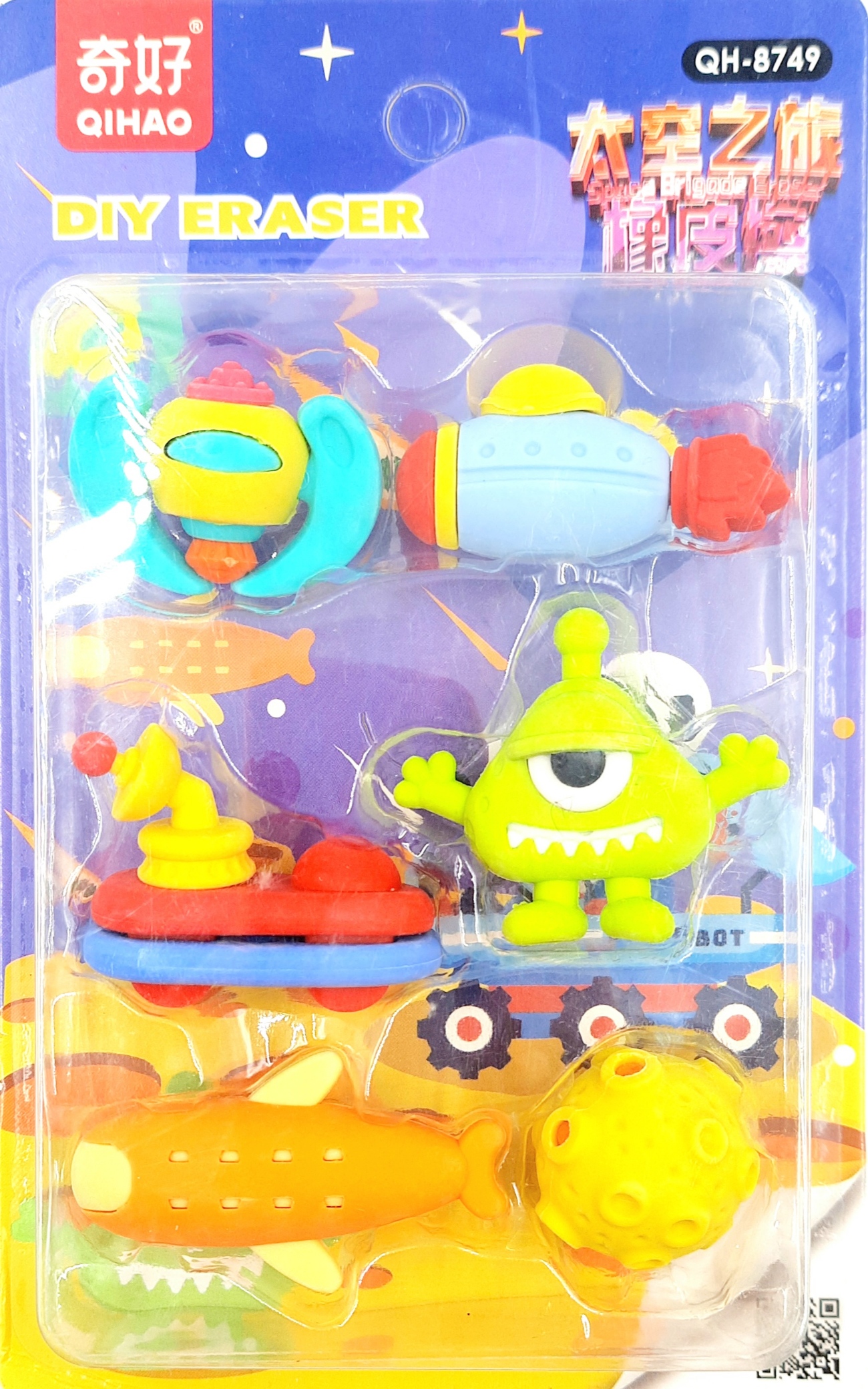 Gumki szkolne kosmos to 6 bardzo oryginalnych gumeczek. Pięć z nich to kosmiczne pojazdy, a szósta to ich magiczny kierowca. Wspaniały prezent dla każdego szkolniaczka i przedszkolaczka.