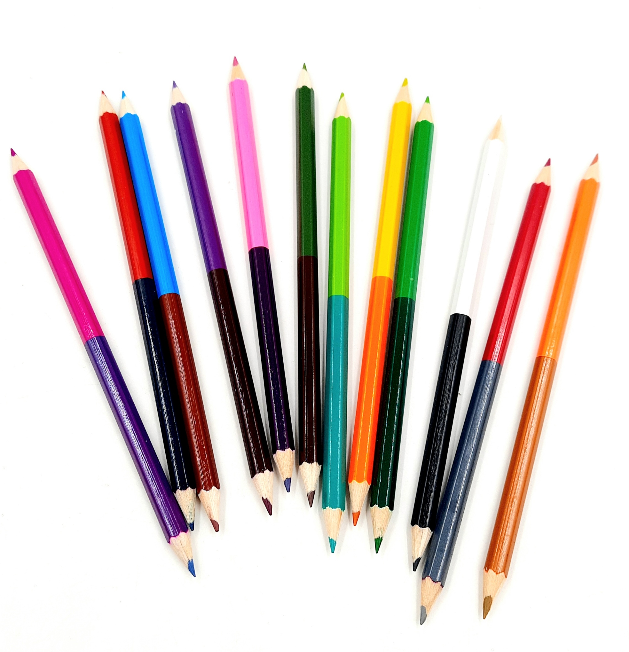 Kredki dwustronne to 12 kolorowych drewnianych kredeczek. Trzeba przyznać, że są magiczne, gdyż jedna kredka maluje aż dwoma różnymi kolorkami. Dzięki temu mamy 24 kolorki i tylko 12 kredek!
