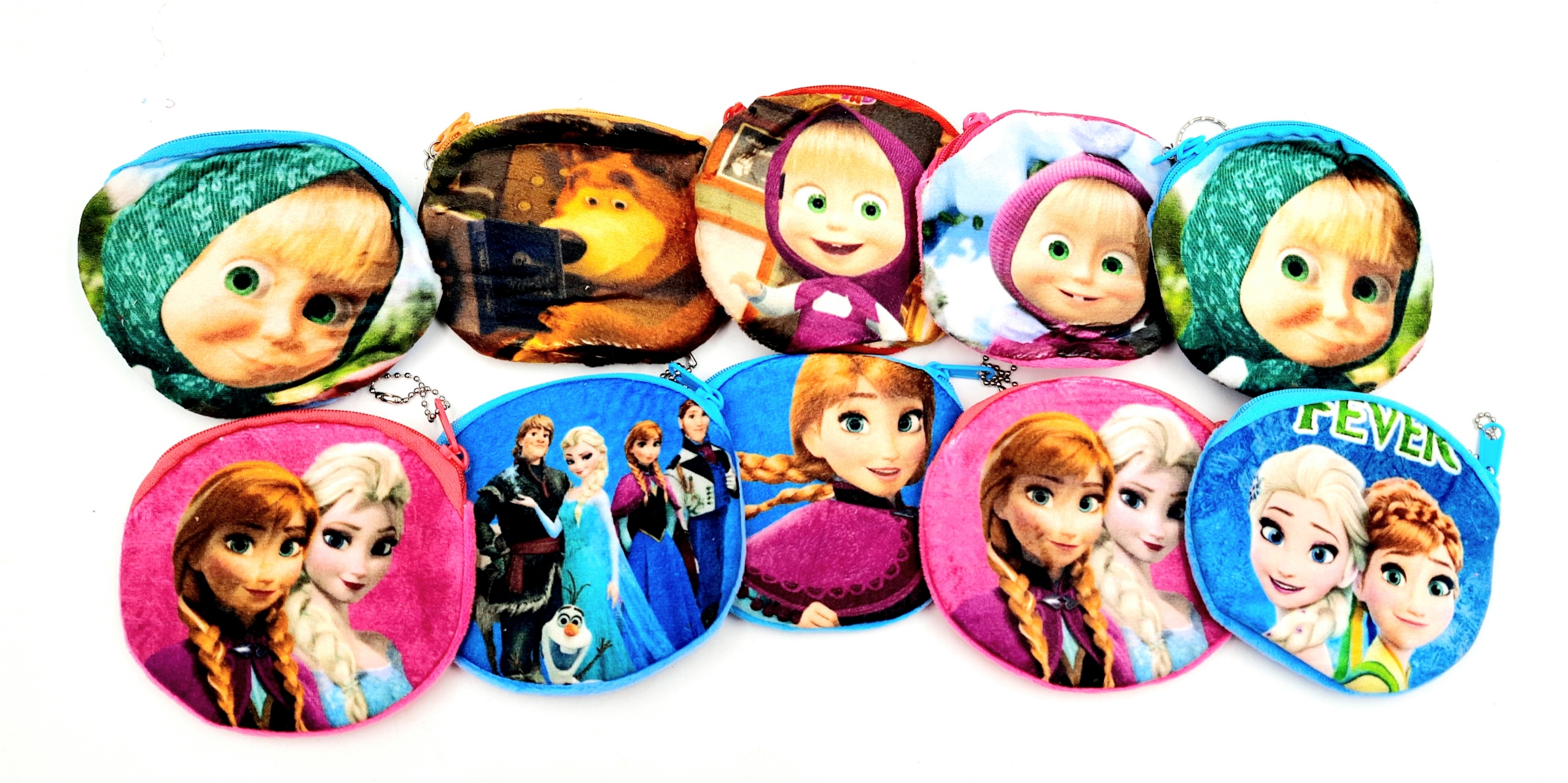 Portfeliki bajkowe mix to 10 sztuk różnorodnych pluszowych sakieweczek. Każdy portfelik zapinany jest na ekspresik i pozwala ukryć pieniążki i inne skarby.