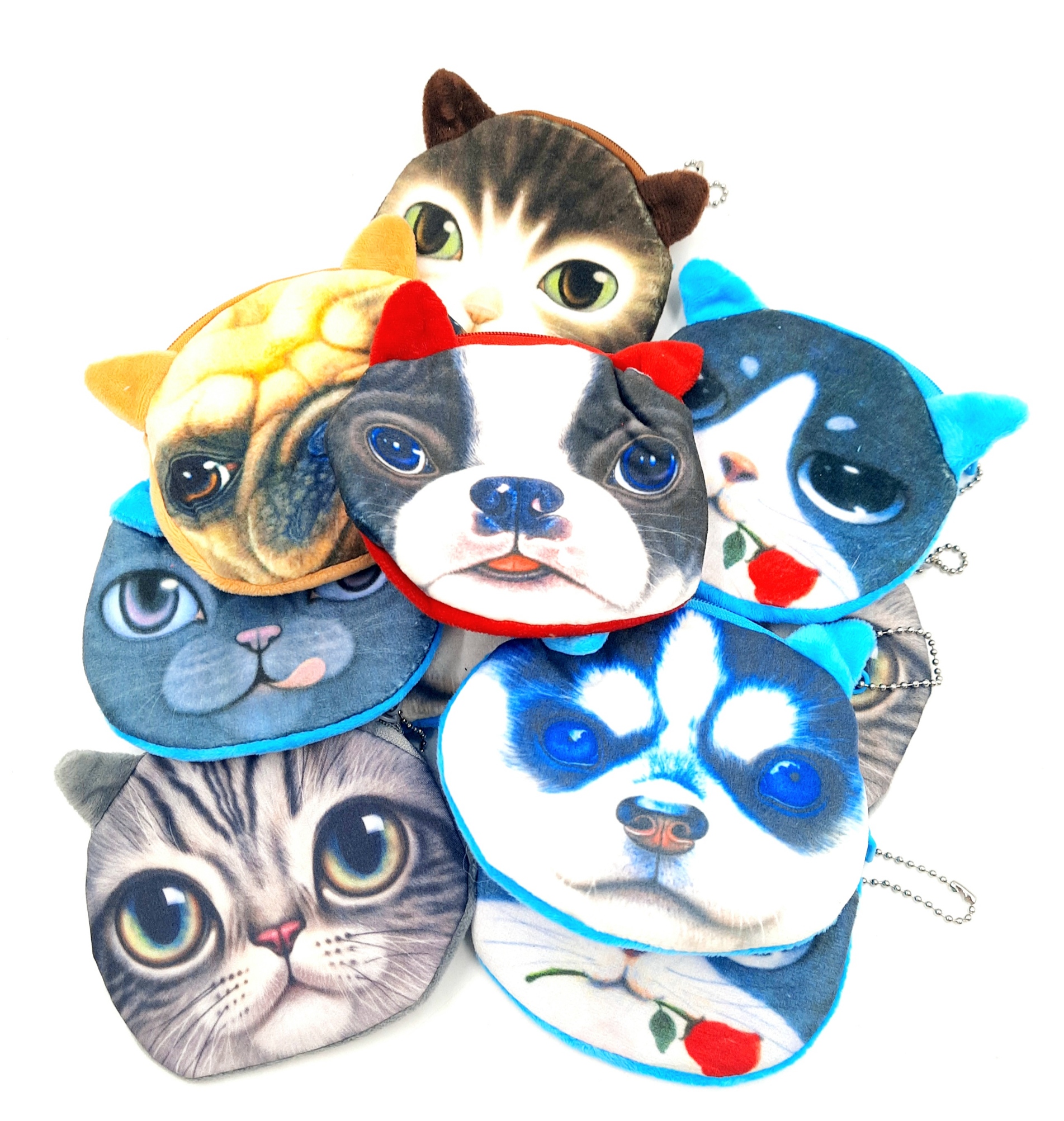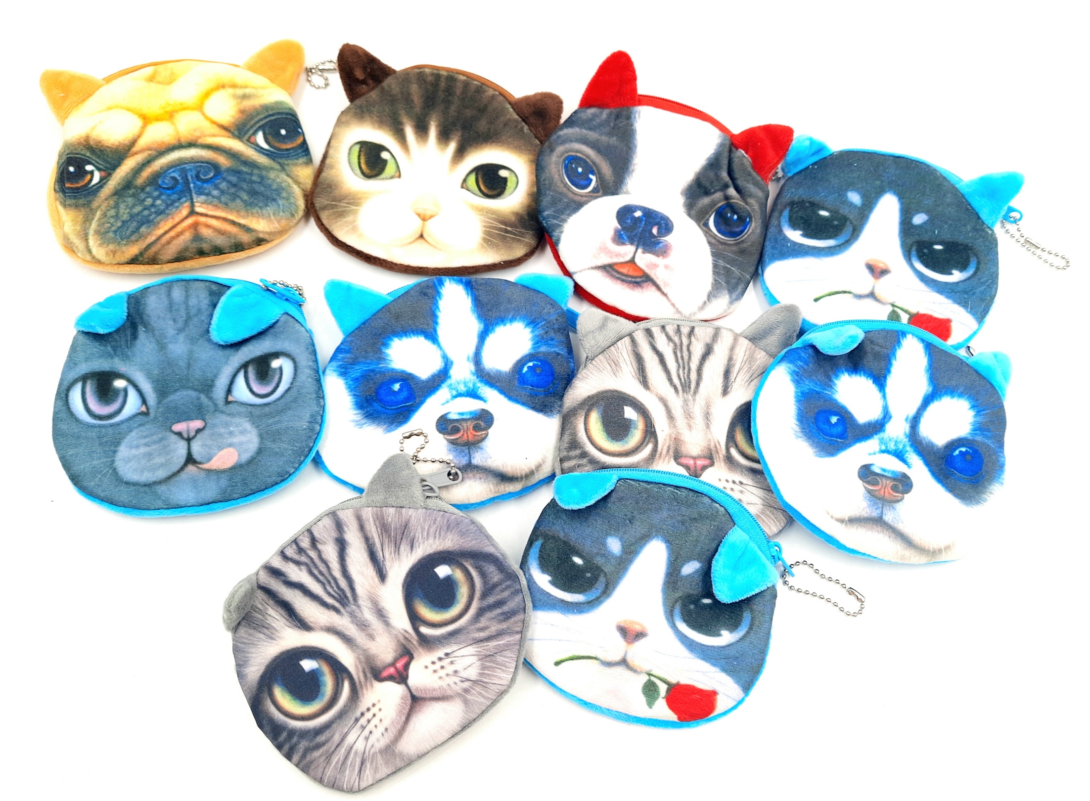Portfeliki kotki pieski to 10 zamykanych na ekspresik portfeli. Mamy nadzieję, że różnorodność zwierzaczków sprawi, że znajdziesz swojego pupila. Portfelik wykonany jest z pluszowego materiału.